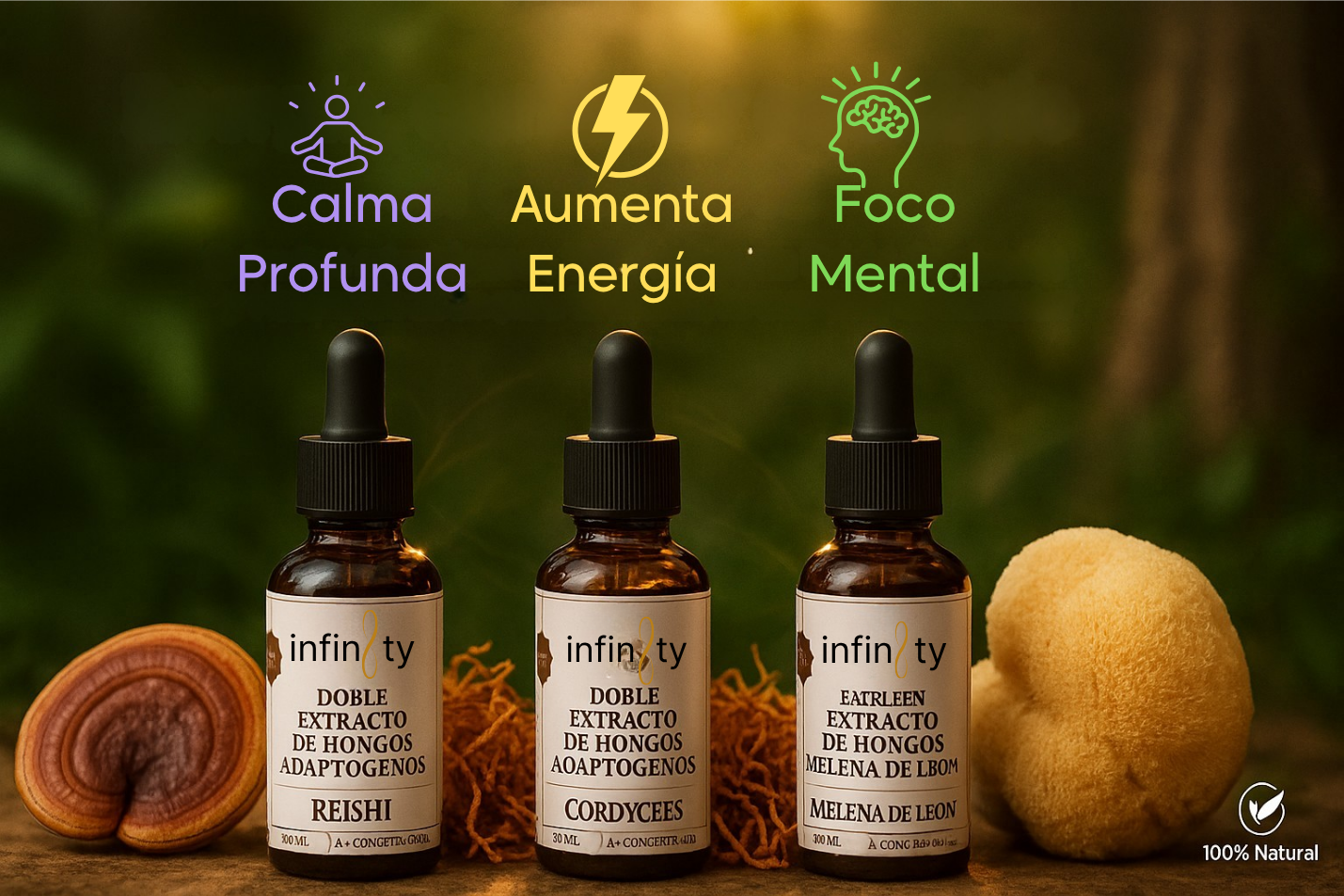 Los hongos adaptógenos ayudan a tu cuerpo a EQUILIBRARSE de forma natural. Regulan la respuesta al estrés, aumentan la energía celular y mejoran la claridad mental, favoreciendo tanto el bienestar físico como el mental